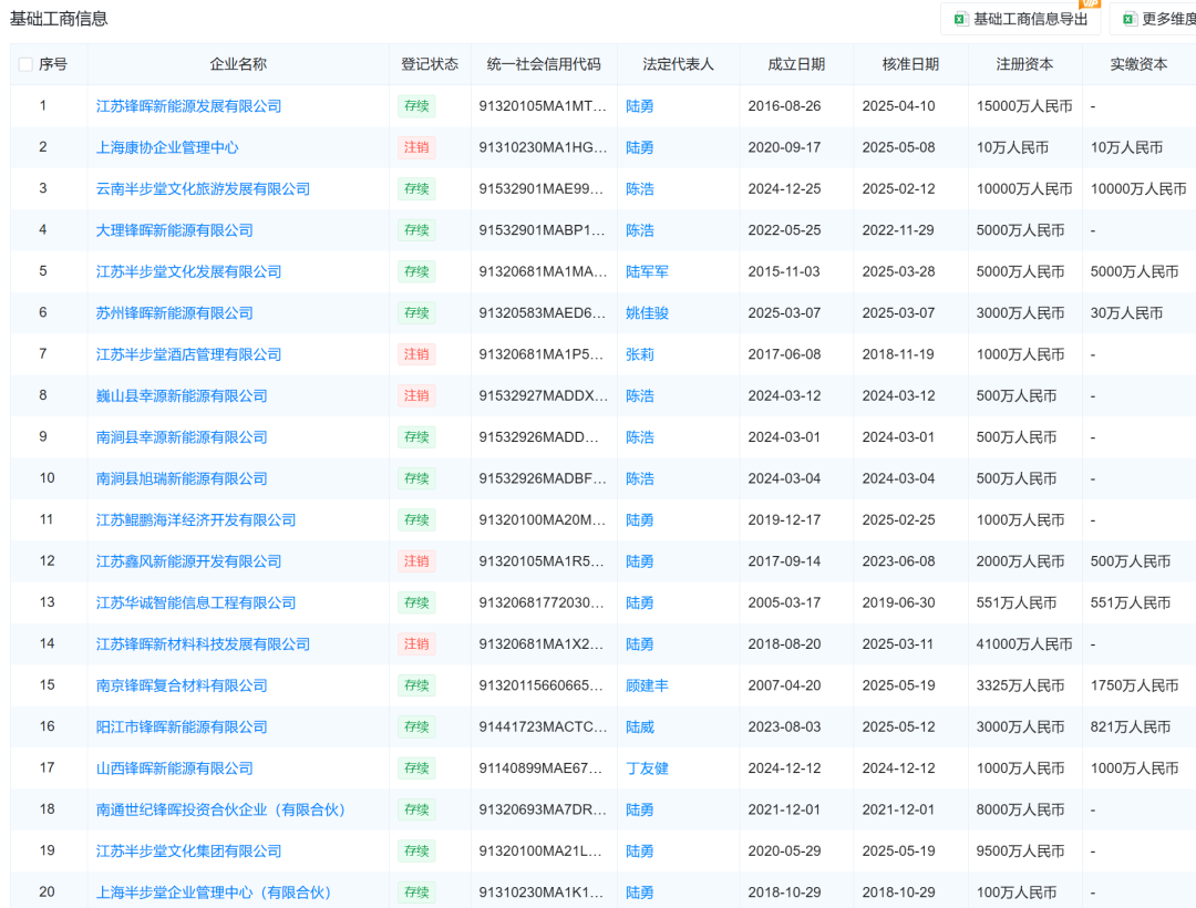 天眼查显示,陆勇控制的企业,有多家公司以“半步堂”命名。