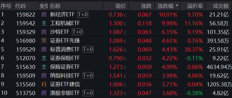 新经济ETF今日涨停 多只证券保险相关ETF涨超4%